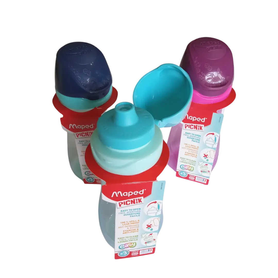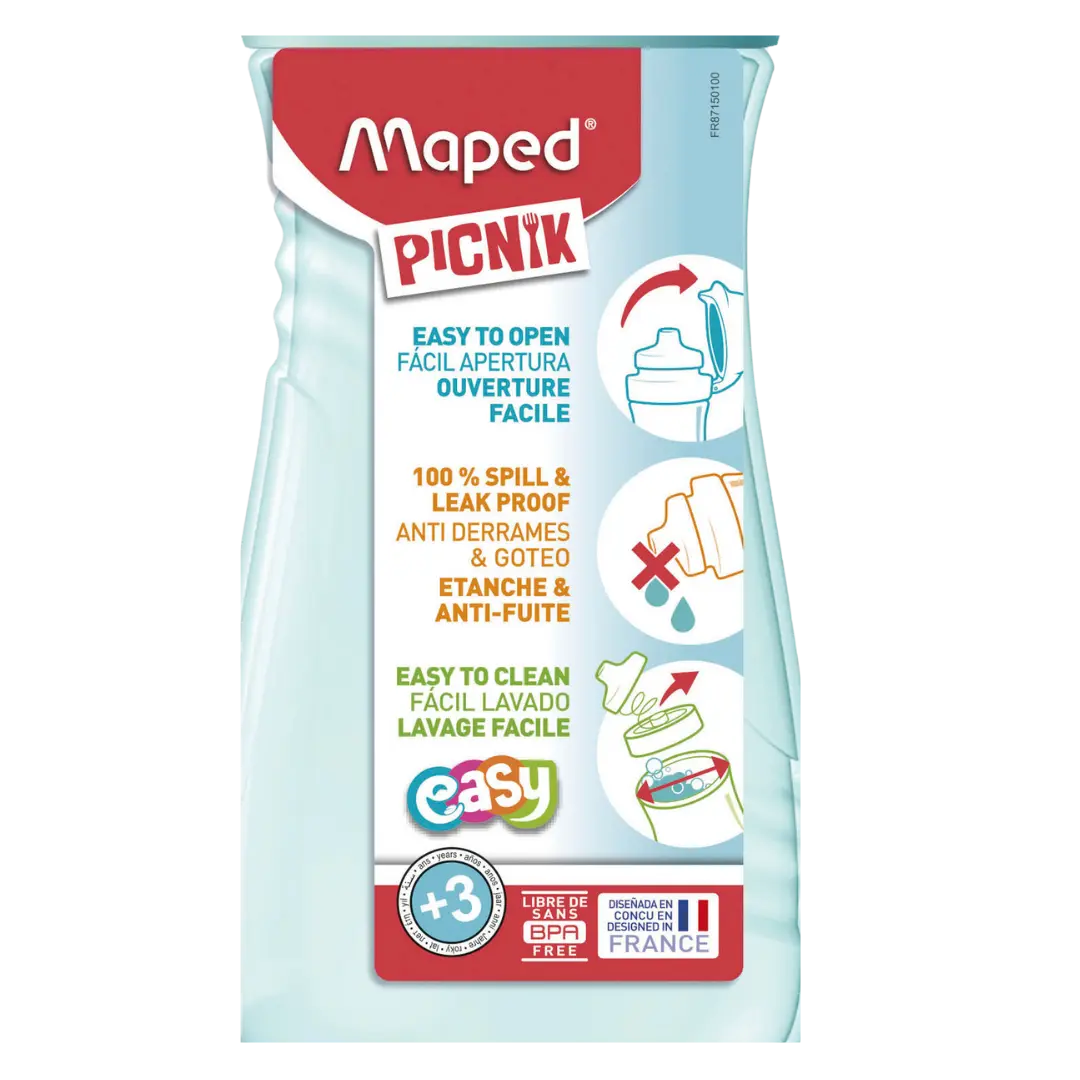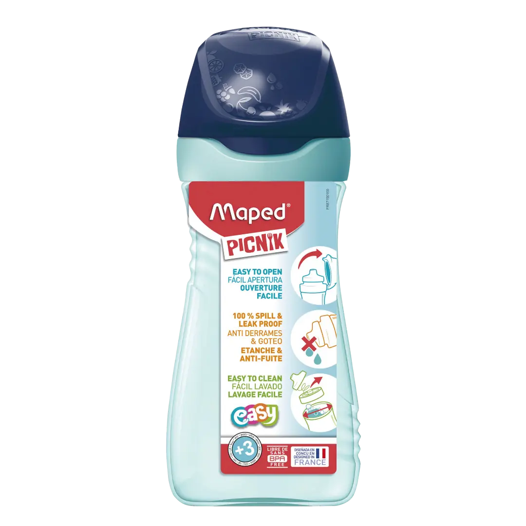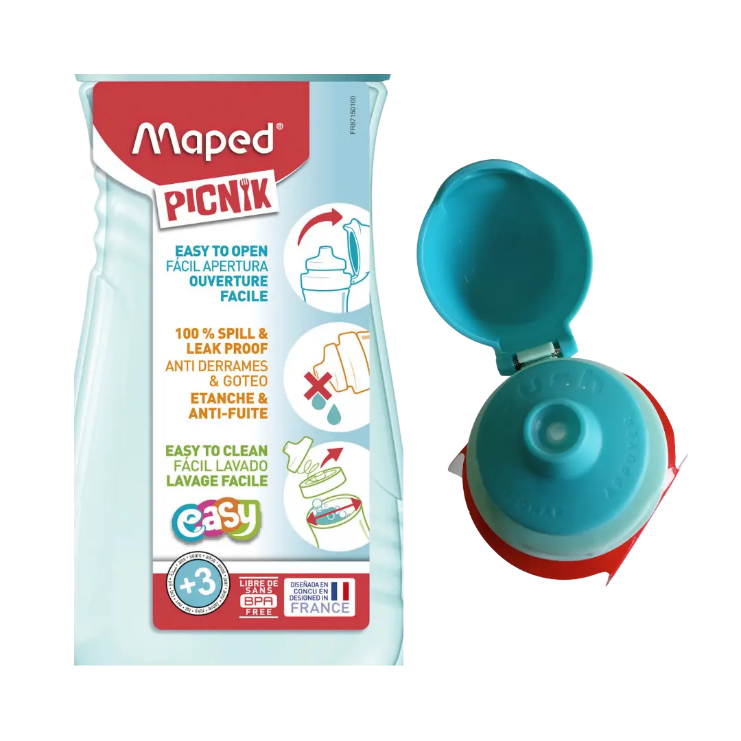 Botella infantil Maped Picnik Easy diseñada para acompañar a los más pequeños en sus actividades diarias. Su formato ergonómico y sistema antiderrame la convierten en la opción ideal para llevar agua o jugo al colegio, paseos o actividades deportivas. Fabricada con materiales seguros y duraderos, es práctica, higiénica y fácil de usar.