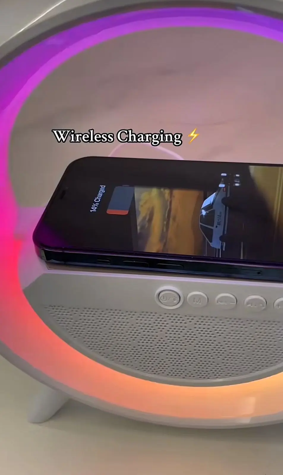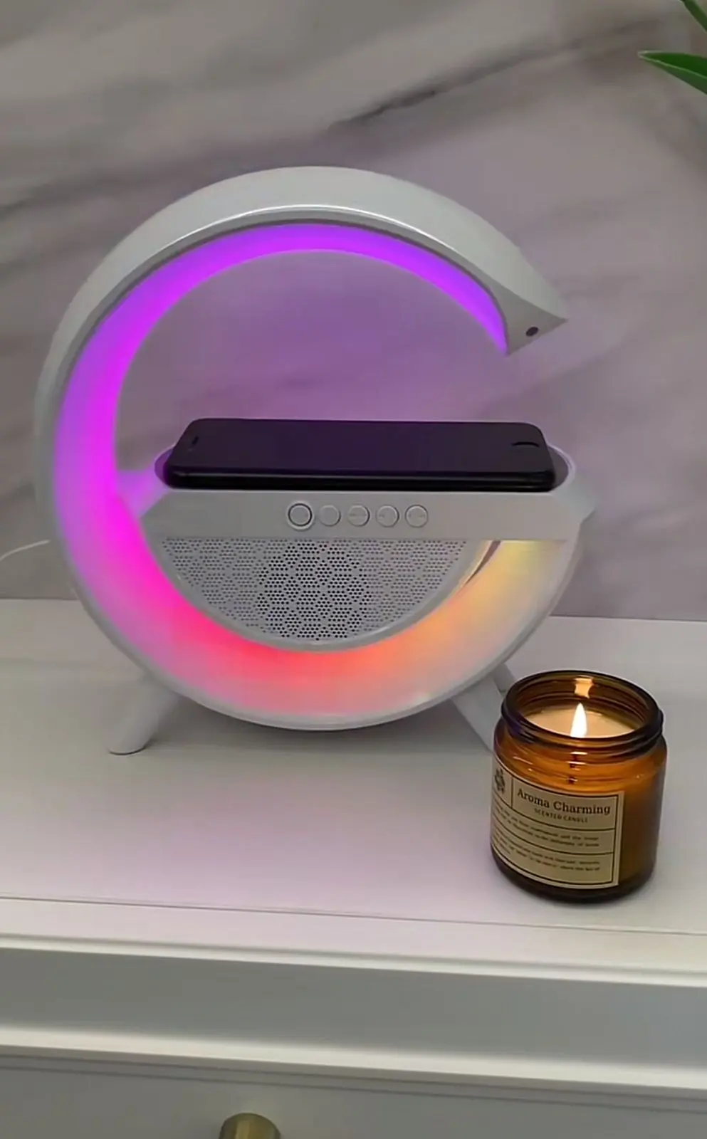 Perfecta para crear un ambiente acogedor, escuchar música y cargar tu celular al mismo tiempo. Ideal para mesas de noche, escritorios o espacios de descanso.